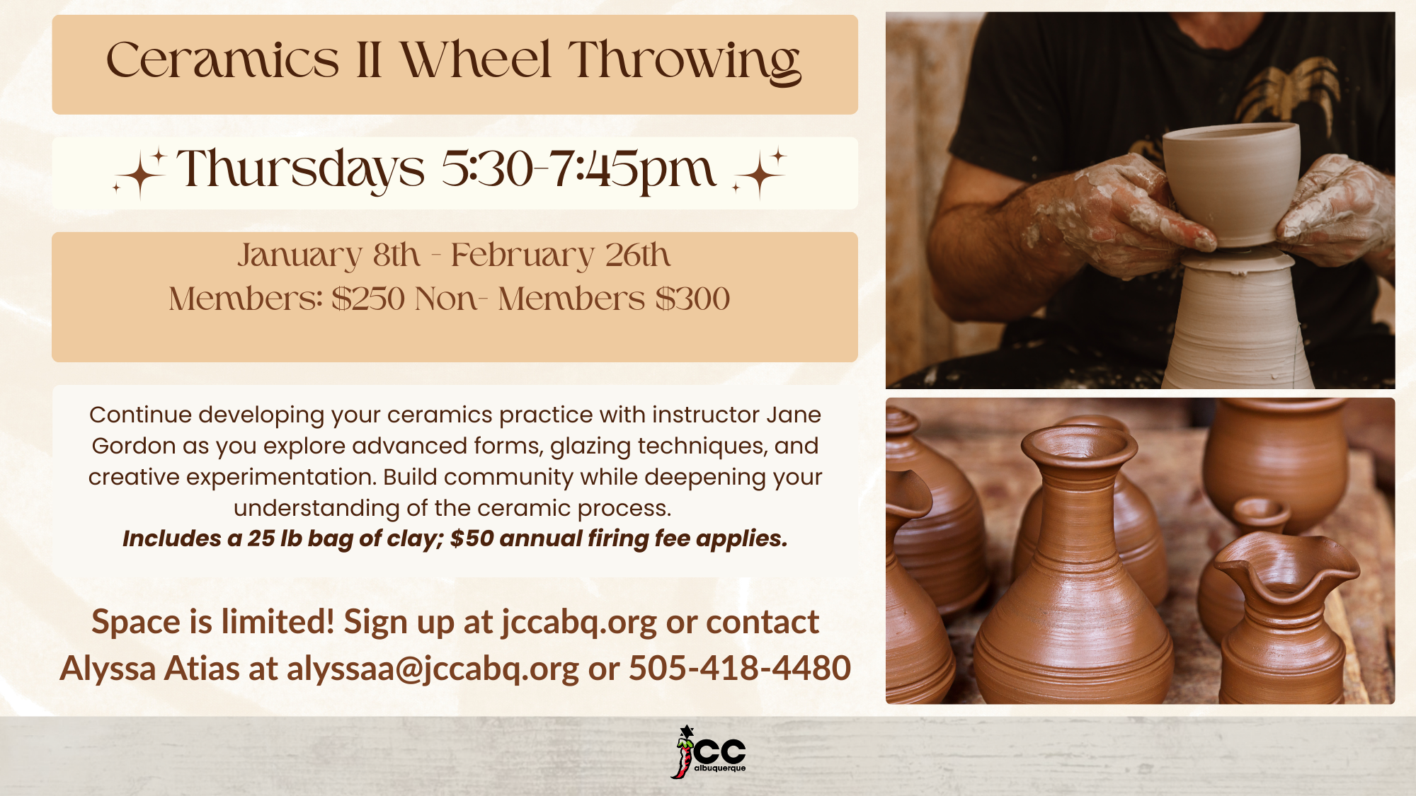 Continue developing your ceramics practice with instructor Jane Gordon as you explore advanced forms, glazing techniques, and creative experimentation. Build community while deepening your understanding of the ceramic process.